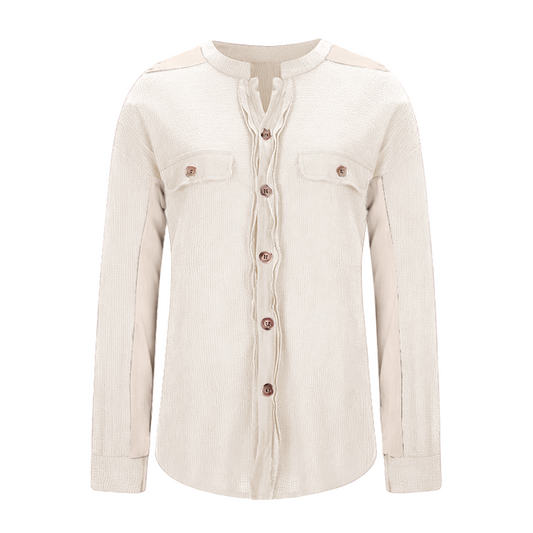 Womens Casual Button V Neck Long Sleeve Shirts Solid Blouses Tops